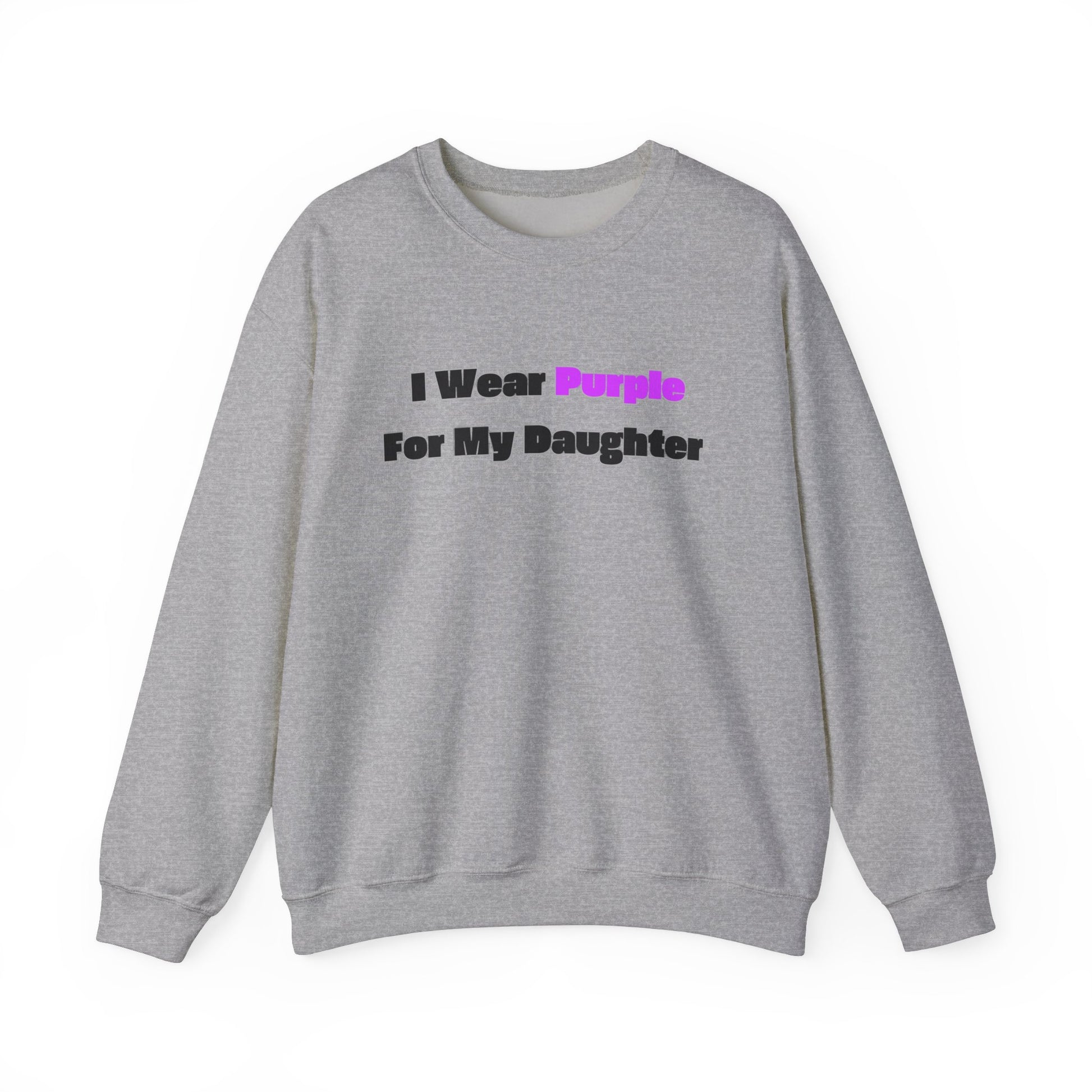 I Wear Purple for My Daughter Crewneck Sweatshirt - Unisex Heavy Blend, Gift for Awareness and Support